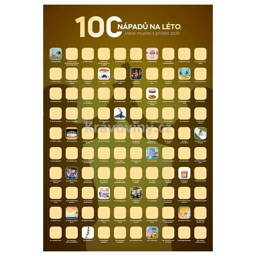 Vytvořte si nezapomenutelné léto s naším stíracím plakátem „100 nápadů na léto s přáteli“ a objevujte nová místa, zážitky a dobrodružství s přáteli. Plakát sestavený s láskou a smyslem pro dobrodružství ve formě bucketlistu Vám umožní sledovat, jak jste společně plnili každý úkol ze seznamu. Využijte slunečních dnů a vytvořte společné vzpomínky, na které budete rádi vzpomínat.