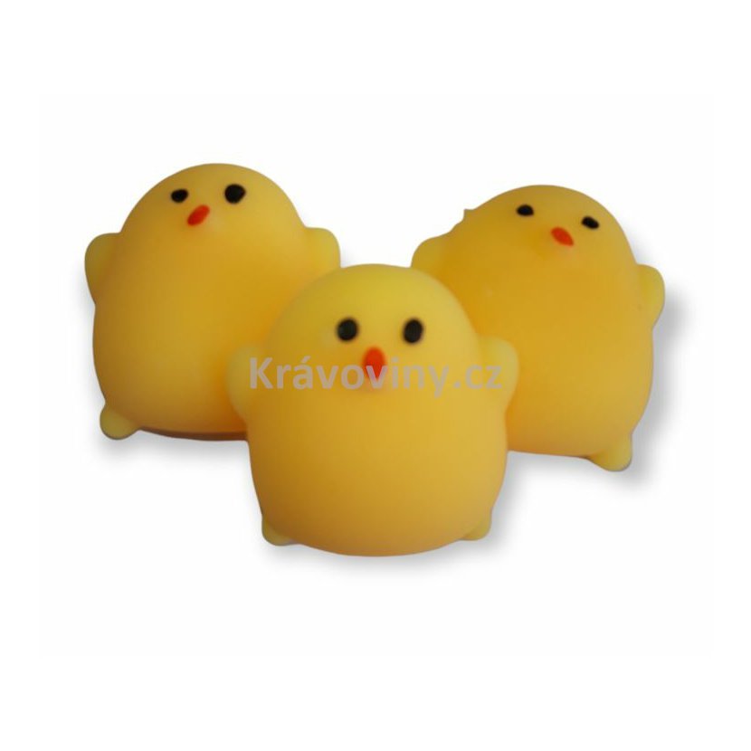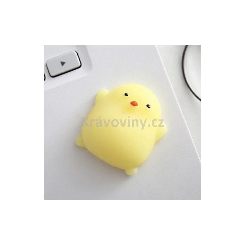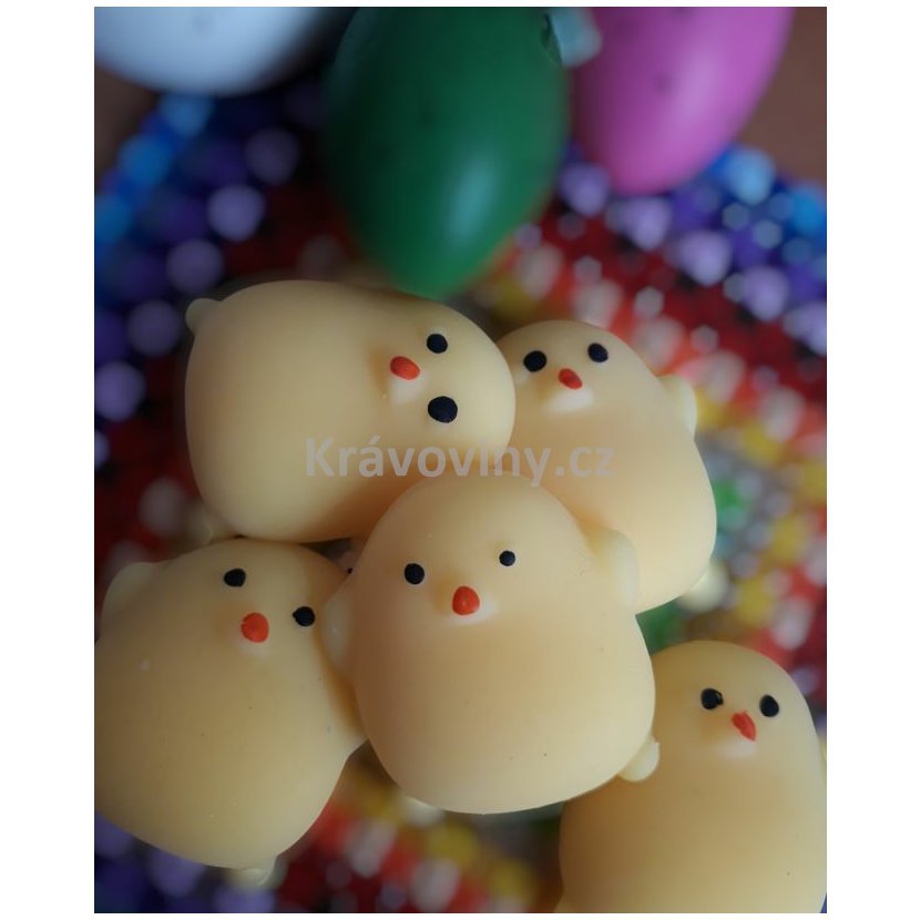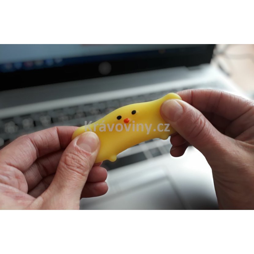 Namasírujte bříško svému malému kuřátku. Antistresová mini hračka jako čínské populární kuřátko Kawaii. Mini hračka je velice oblíbená mezi dětmi, ale také mezi dospělými třeba v kanceláři, když je potřeba uvolnit napětí a stres.. Položte kuřátko na stůl a prstem mu třeba masírujte bříško, nebo mačkejte mezi prsty, natahujte na všechny strany. Antistresové kuřátko je malé, že se vejde i do kapsy a nikdo si ani nemusí všimnout, že zrovna upouštíte páru mačkáním malého kuřátka. Materiál je velmi měkký a příjemný na dotek. Můžete jej mačkat jakoukoliv silou a přesto se vždycky vrátí do svého původního tvaru, má uklidňující účinky.