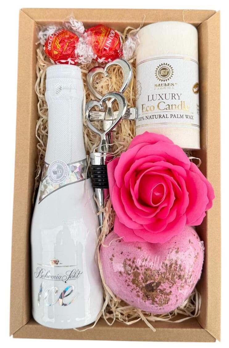Koupelová bomba srdce Love Tender Mýdlový květ růže velký růžový Svíčka Luxury bílá Zamilovaný set na víno srdíčka