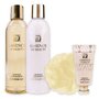V dárkové krabičce naleznete sprchový gel 240 ml, tělové mléko 240 ml, tělový peeling 30 ml a koupelovou houbičku.