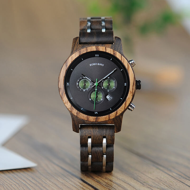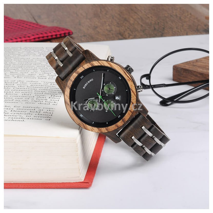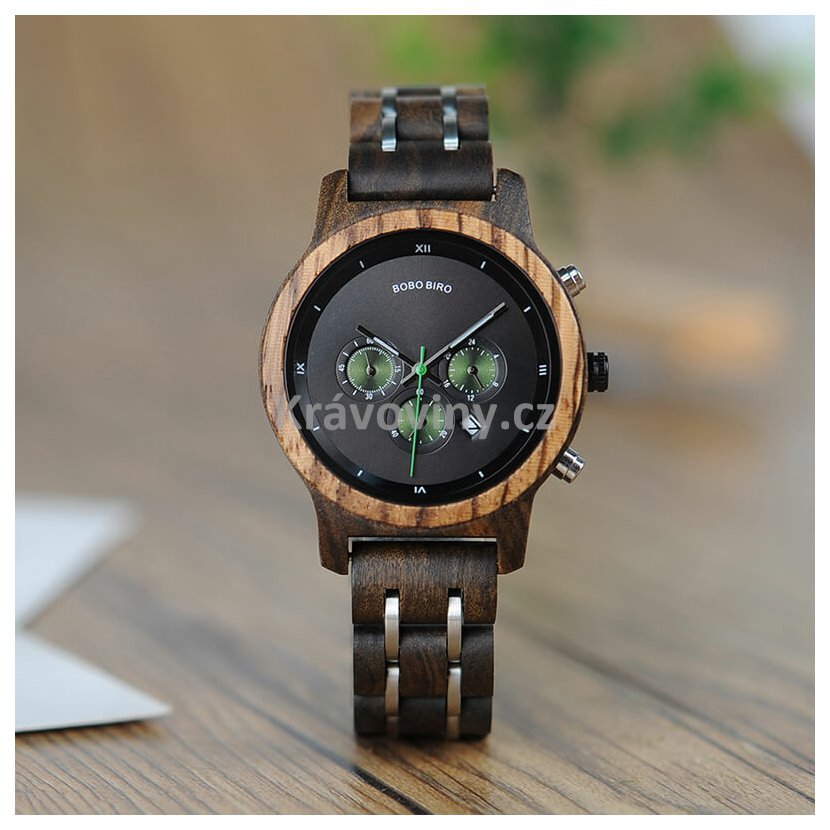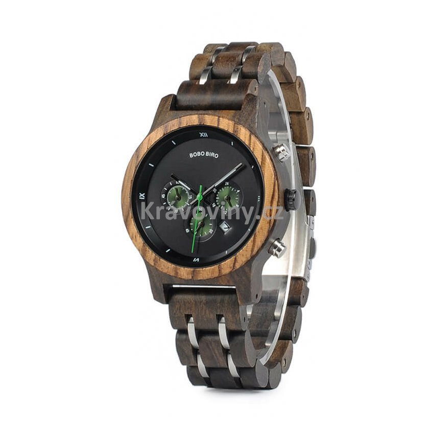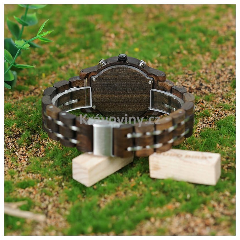 Luxusní pánské hodinky Bobo Bird s funkcí času a kalendáře, které zaujmou detailním ručním zpracováním a elegantní kombinací materiálů. Hodinky jsou vyrobeny z pevného bambusového dřeva a oceli. Celkový design vyladěný do nejmenších detailů, podtržený přírodními odstíny, nízká váha a jemné přechody mezi materiály, se postarají o ten nejlepší pocit z nošení. Jednoduché upnutí zajistí kovová bezpečnostní spona a spolehlivý chod hodinový strojek značky Quartz. Tyto dřevěné náramkové hodinky s funkcí času, jsou originálním módním doplňkem pro moderní muže kladoucí důraz na eleganci a perfektní vzhled.
