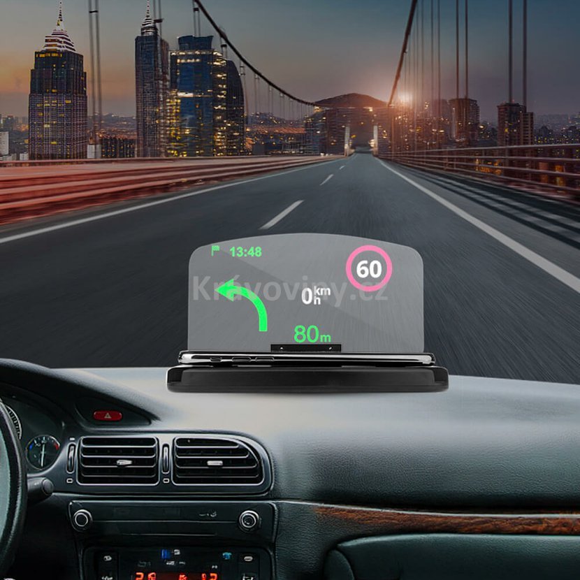 Tento HUD displej Head Up Display umožňuje bezpečně sledovat rychlost, navigaci a další důležité informace přímo před vámi bez nutnosti spouštět oči z vozovky.
