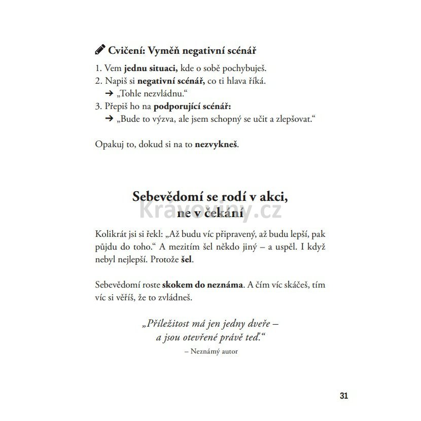 Je to praktický průvodce, jak si nastavit hlavu, najít odvahu, budovat sebevědomí, tvořit návyky a jít si za svým cílem – krok za krokem, den za dnem.
