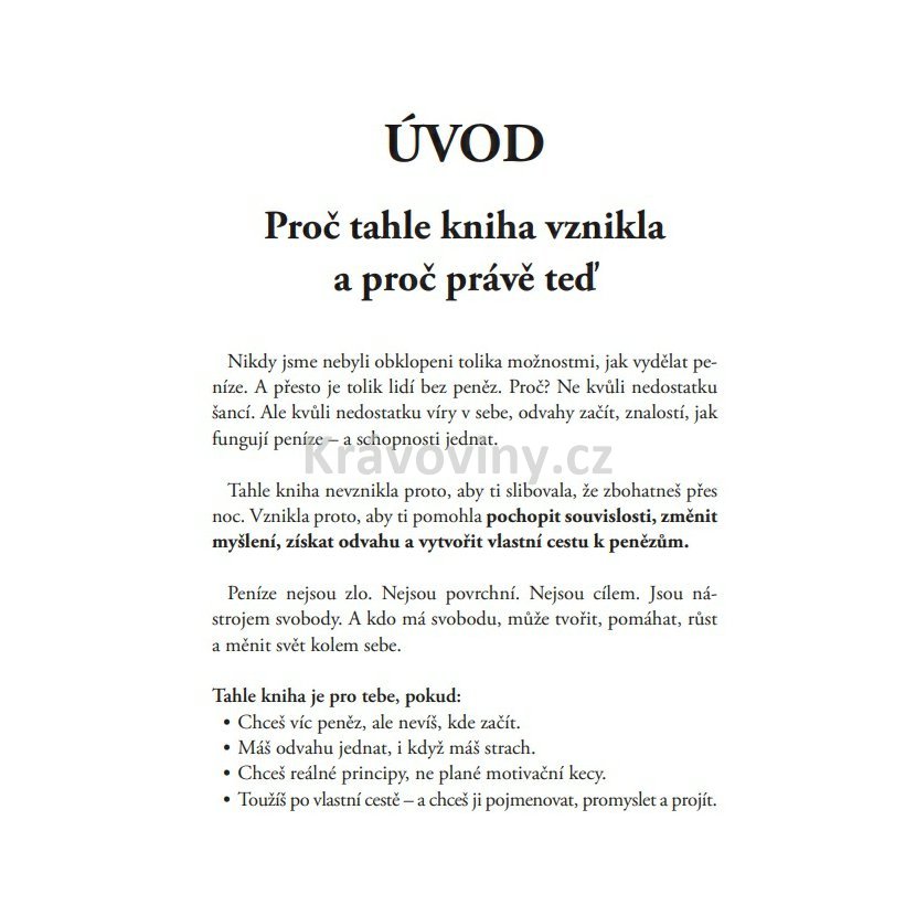 Tahle kniha tě provede vším, co tě ve škole nenaučili: od vztahu k penězům, sebevědomí a odvahy začít, přes finanční gramotnost, tvorbu hodnoty, až po skutečné principy pasivního příjmu.