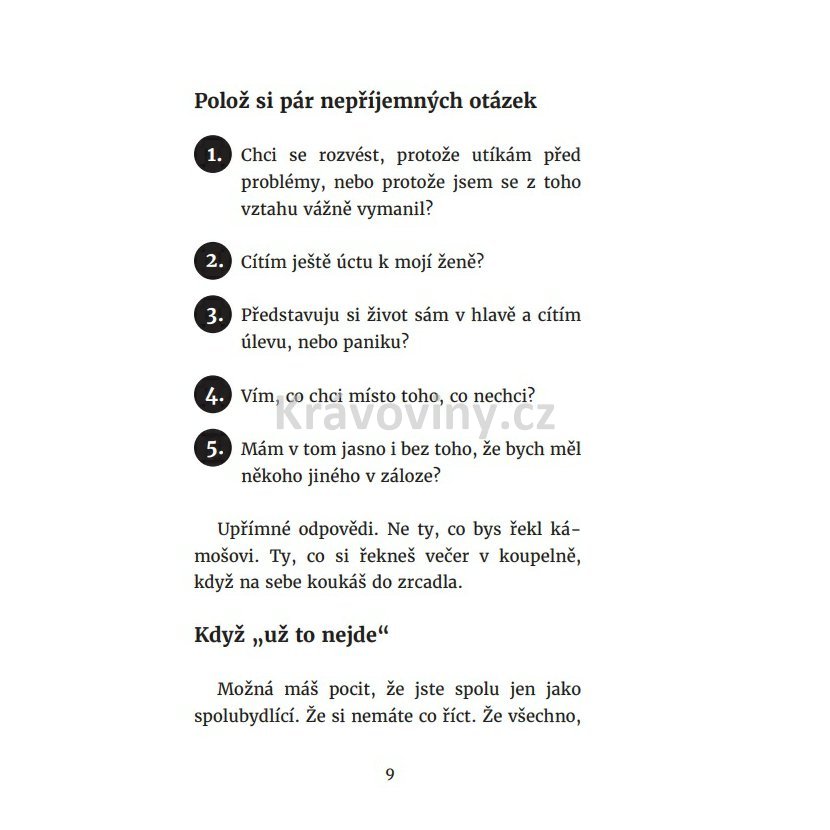 Rozvod není konec. Tahle kniha ti pomůže neztratit hlavu, koule ani budoucnost. Rozměr knihy: 130 × 170 mm. Vazba měkká. Počet stran: 116. ISBN: 978-80-909636-4-1
