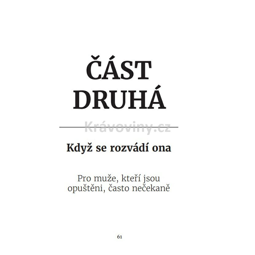 Tahle kniha je férový, praktický a místy drsně upřímný průvodce pro chlapy, kteří se rozvádějí – ať už odcházejí sami, nebo byli opuštěni. Jasné kroky, jak mluvit, jak jednat, jak se nezbláznit a jak z celé situace vyjít jako chlap se ctí.