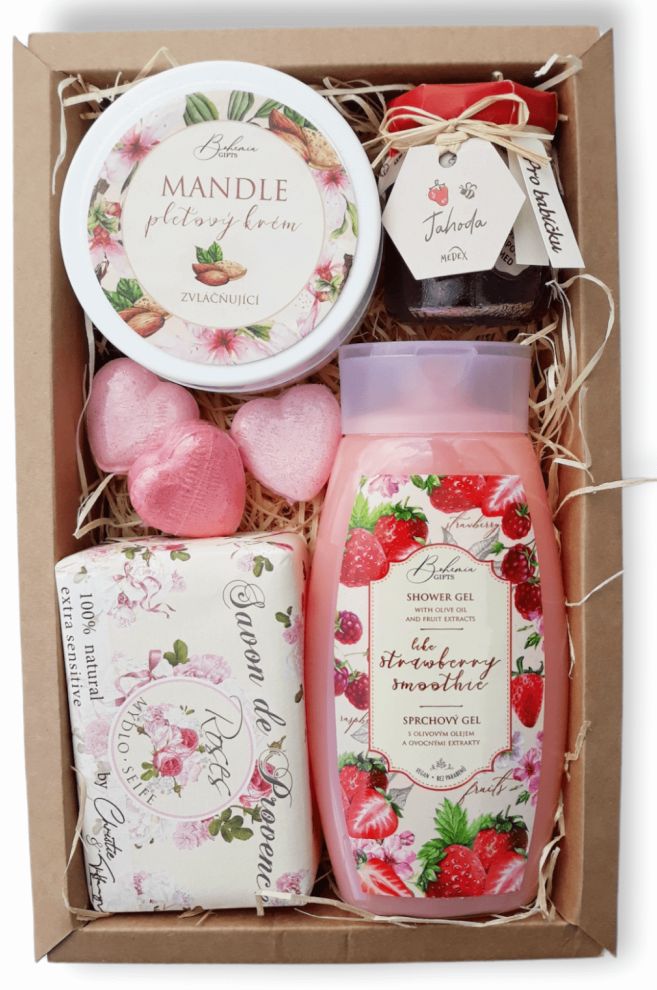 Kosmetický balíček jako originální a netradiční dárek určený speciálně pro všechny babičky, které se rády vyžívají ve voňavých a pečujících přípravcích do koupelny. Pokud si nevíte rady s výběrem dárku pro babičku, tak s tímto balíček nic nezkazíte a naopak dárkem velice potěšíte. V balíčku vaše babička najde vše, co může příjemně využít a navíc si k tomu ještě trochu osladí život. Hýčkejte si tu svou báječnou babičku!