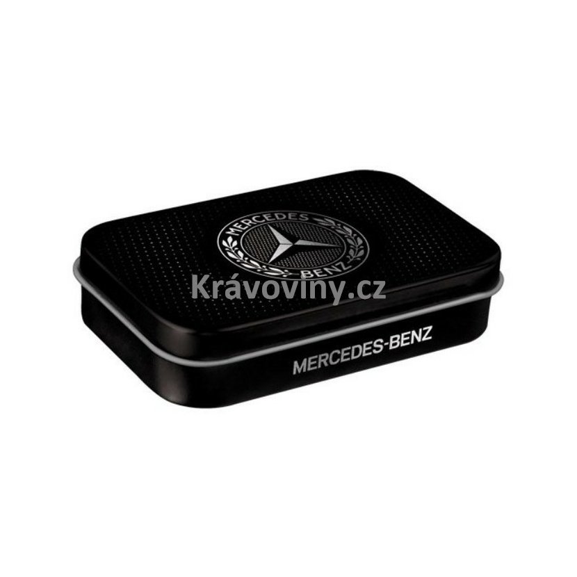 Stylová a praktická mint box plechovka s legendárním motivem Mercedes - Benz je ideální malý dárek pro milovníky automobilů a značky Mercedes - Benz.
