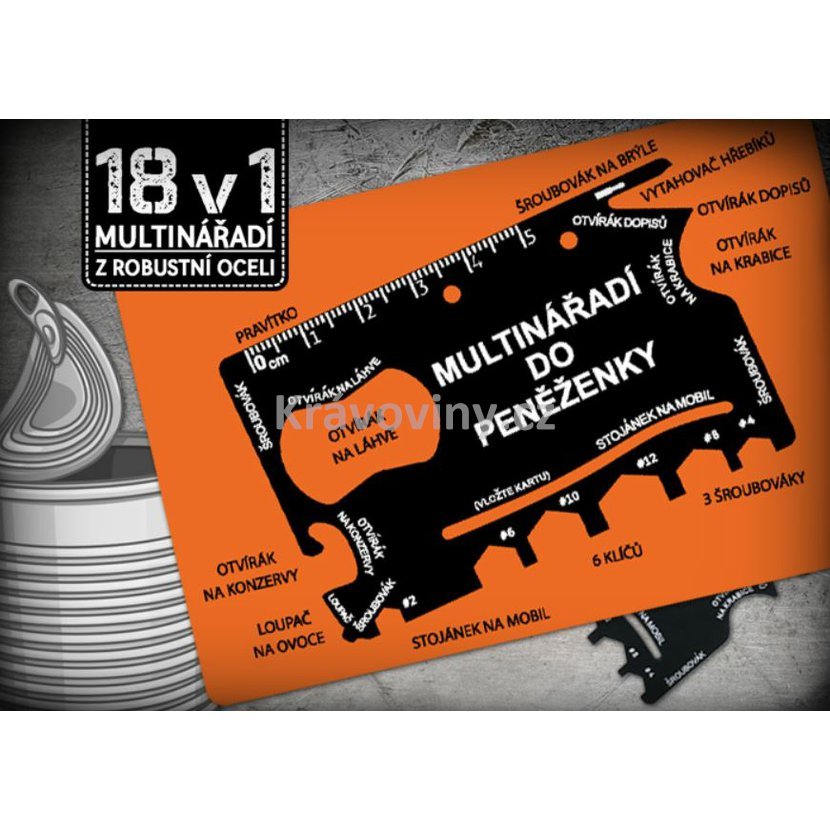 Ultra tenké multinářadí 18v1 do peněženky je díky své multifunkčnosti velice praktický dárek pro tatínka, kolegu nebo kamaráda, který mu usnadní život. Odteď bude vždy připraven!