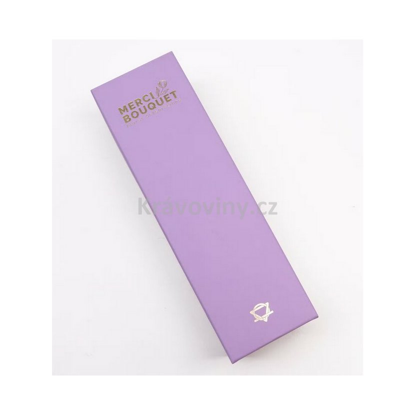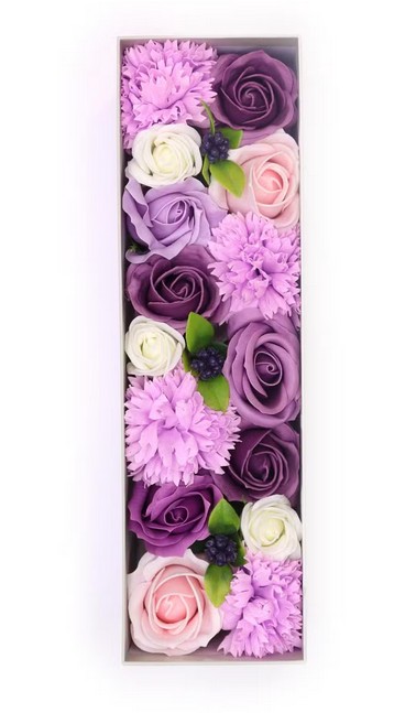 Elegantní dárkový box plný fialových mýdlových květů je dokonalým spojením krásy a praktičnosti. Luxusní aranžmá v dlouhém boxu působí romanticky a nadčasově – potěší jako originální dárek i stylová dekorace do interiéru.