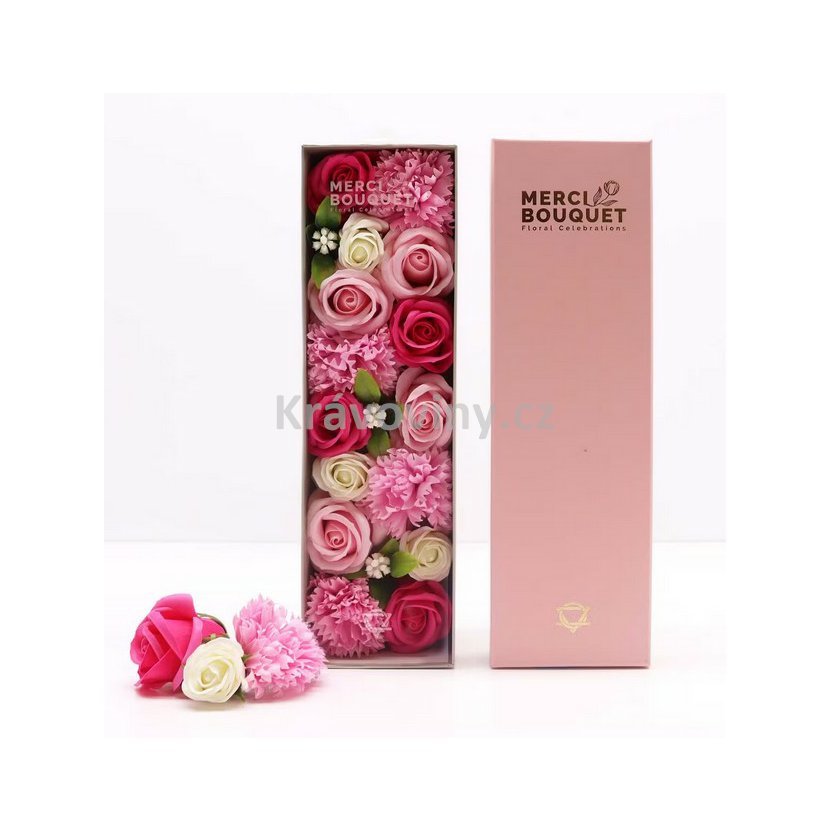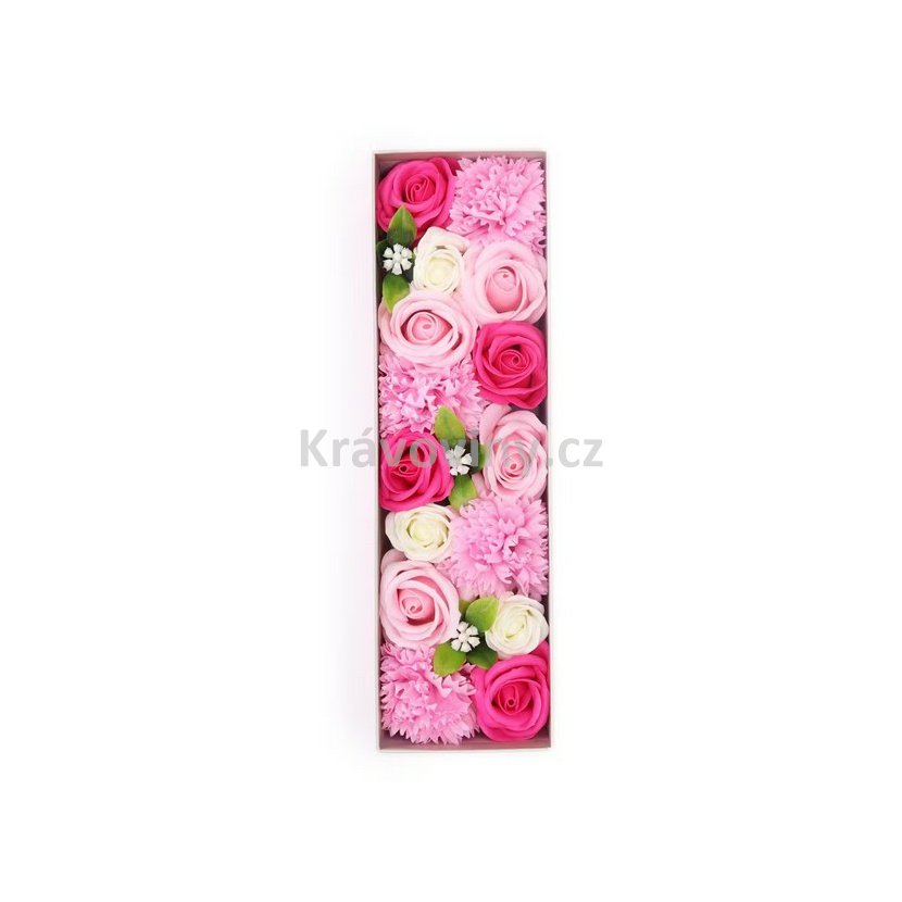 Dopřejte sobě nebo svým blízkým dotek elegance a voňavého luxusu v podobě mýdlových květů v dlouhém růžovém boxu.