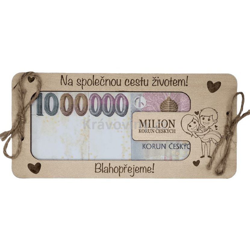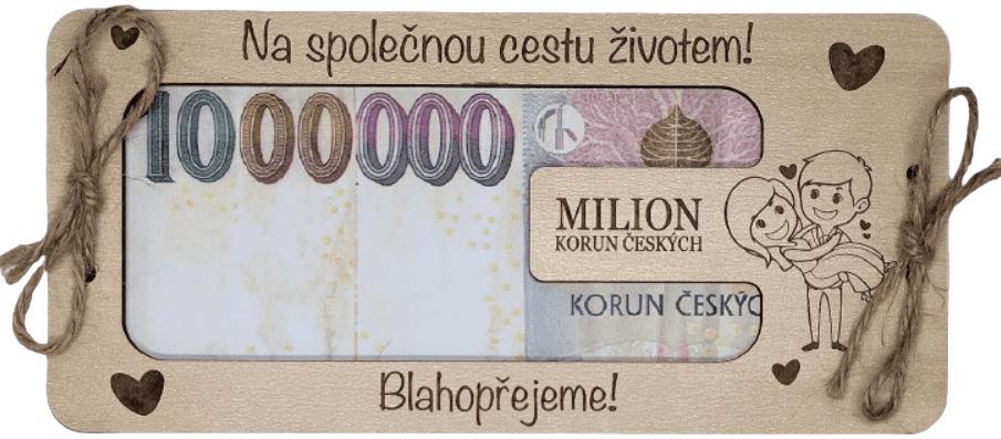 Darovat peníze jako svatební dar? Není nic originálnějšího, než darovat bankovky v krásné dřevěné kapse, kam darujete tolik bankovek, kolik chcete. Zároveň tak vtipně můžete na první pohled darovat nevěstě a ženichovi rovný milion korun.