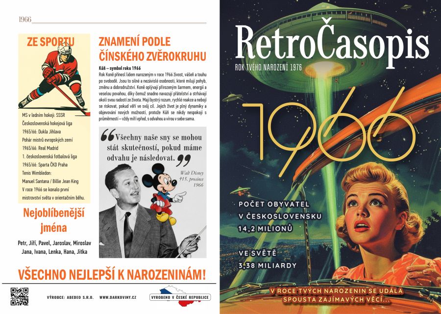 Vrať se do roku 1966 a objev, jak vypadal svět, když ses narodil/a! RetroČasopis 1966 je jedinečný retro dárek k narozeninám, který tě zavede do šedesátých let.