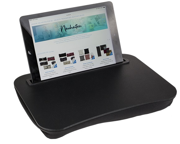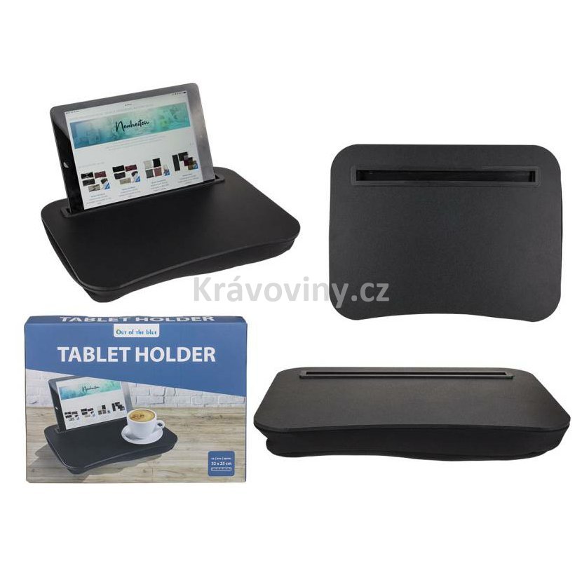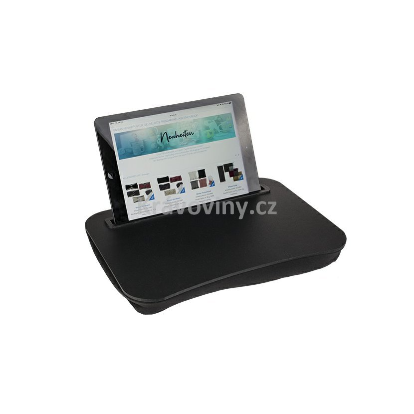 Univerzální stojan pro tablety disponující odkládací plochou. Usnadněte si práci s tabletem doma, nebo v zaměstnání. Stojan má na spodní straně umístěn polštářek, pro pohodlné položení na nohy. Ideální pomocník při brouzdání na internetu či sledování filmů.