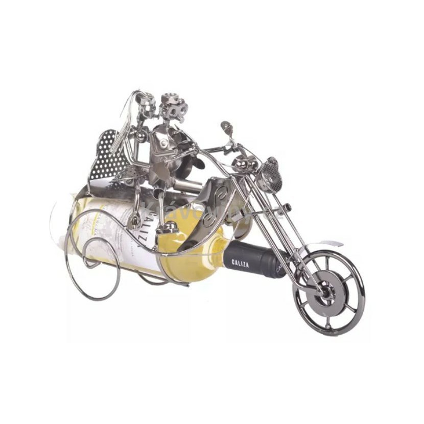 Kovový stojan na víno Motorkář, který brzdí až u skleničky.