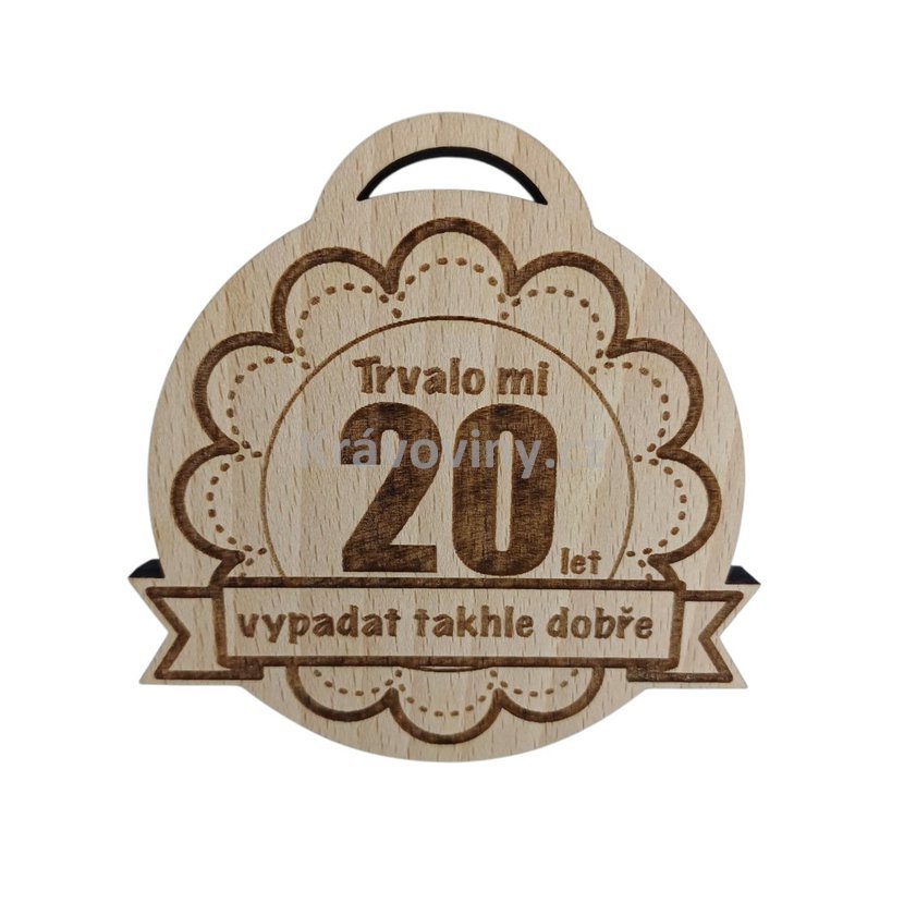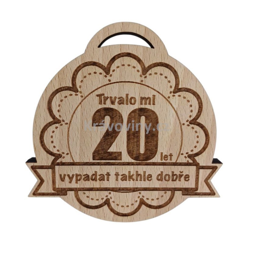 Nádherná medaile s vygravírovaným nápisem: Trvalo mi 20 let vypadat takhle dobře je úžasným dárkem pro všechny čtyřicátníky.