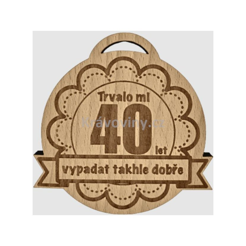Nádherná medaile s vygravírovaným nápisem: Trvalo mi 40 let vypadat takhle dobře je úžasným dárkem pro všechny čtyřicátníky.